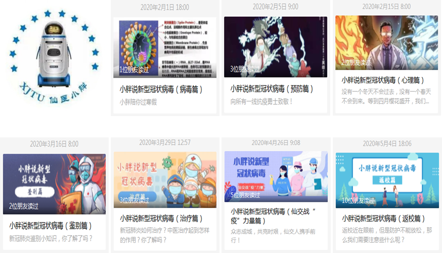 为了将最新的人工智能技术引入实践教学,通过改革教学形态提升教学质量,实验教学团队2019年在国内高校首次引入了一台人工智能机器人“仙医小胖”辅助实验教学。经过数据库扩充和一系列的开发调试后,机器人教学助手开始“登堂入室”参与教学,以更加生动活泼的形式丰富了实验教学的内容和形式。它既能传授知识、答疑解惑,还能讲解课程思政,更能翩翩起舞。可爱又呆萌,一经亮相,就圈粉无数,吸引了社会媒体的广泛关注:大公报、三秦都市报、西安日报、陕西电视台、中国教育在线等媒体纷纷报道了这个萌萌哒的“网红”。在新冠疫情期间,团队老师指导我校医学本科生自己根据相关资料整理撰写,通过“仙医小胖”公众号陆续推出多篇战“疫”系列推文,受到了师生们的广泛关注,得到了大家的充分肯定,也大大提高了医学生自我学习和深度思考的能力。