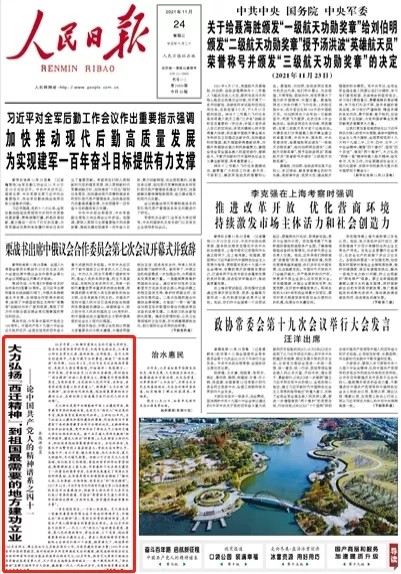 1.人民日报头版《大力弘扬“西迁精神”,到祖国最需要的地方建功立业》