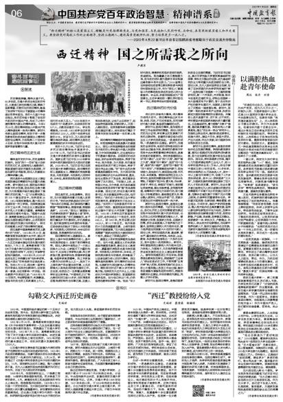 11.中国教育报06版整版《西迁精神 国之所需我之所向》《勾勒交大西迁历史画卷》《“西迁”教授纷纷入党》《以满腔热血赴青年使命》