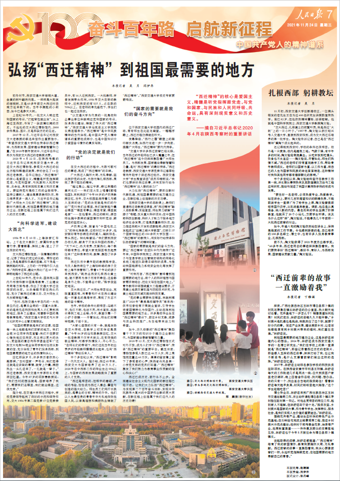 人民日报07版专版《弘扬“西迁精神” 到祖国最需要的地方》《扎根西部 躬耕教坛》《“西迁前辈的故事一直激励着我”》