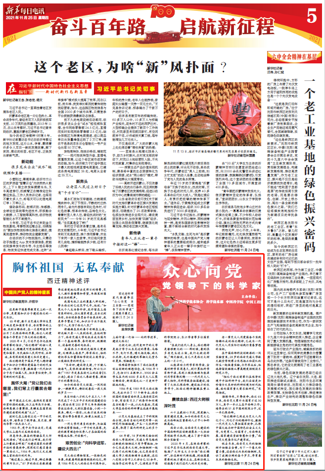 新华每日电讯05版《胸怀祖国 无私奉献 西迁精神述评》